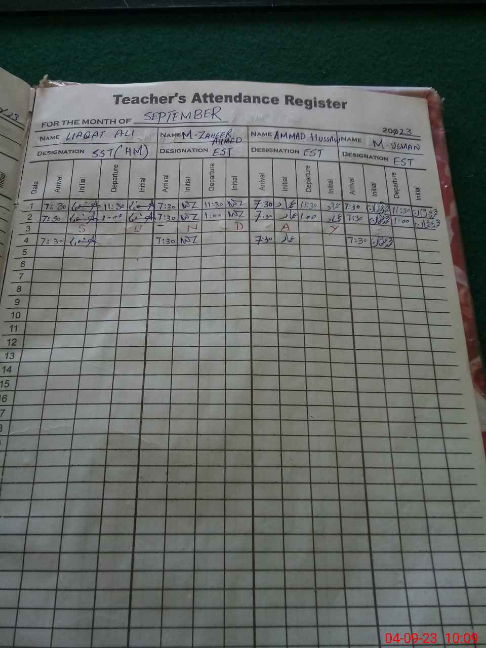 | Name: LI**** AL**** Designation: (School Headmaster's/Headmistress's) SST (General) Phone/Cell Number: 03**** |