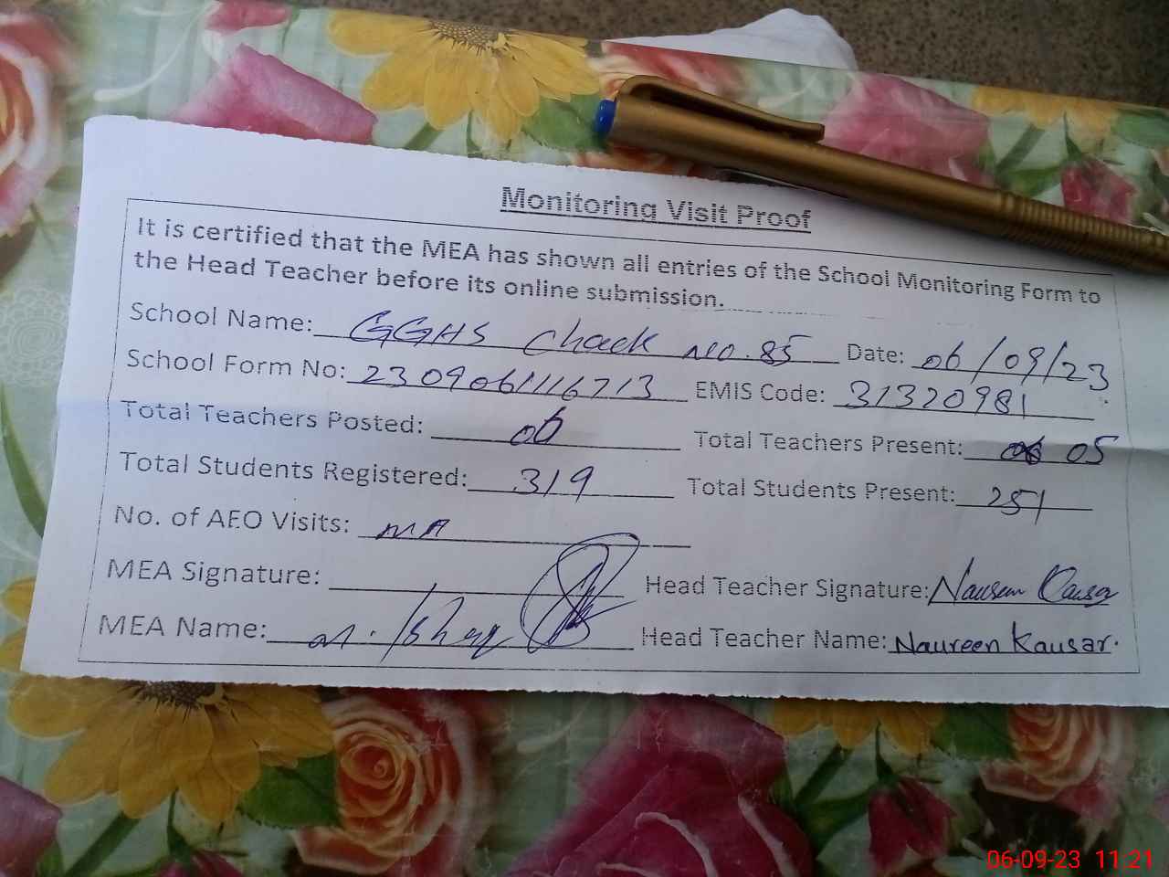 | EMIS Code: 31320981 | Name of School: GGHS 85/A | |||