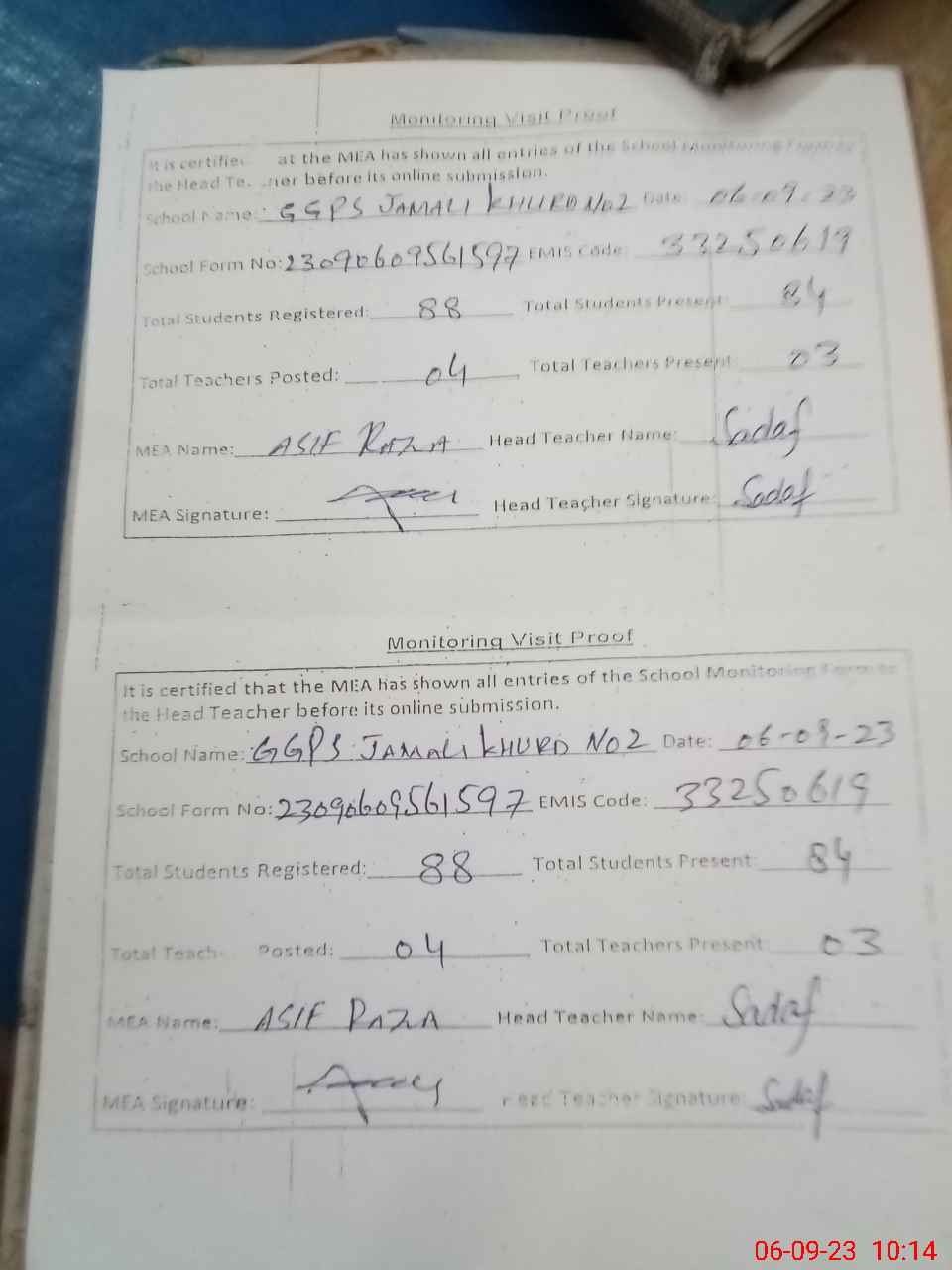 | EMIS Code: 33250619 | Name of School: GGPS JAMALI KHURD NO. 2 | |||