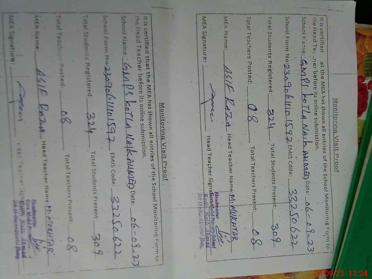 | Name: MU**** MU**** Designation: (School Headmaster's/Headmistress's) PST Phone/Cell Number: 03**** |