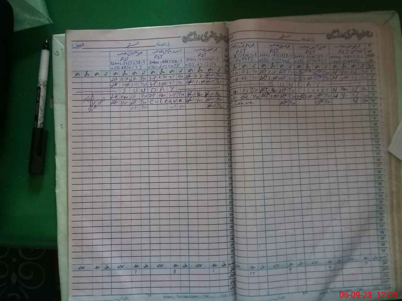 | CNIC | Full Name | Designation | R/C | Absence During Last Calender Month |