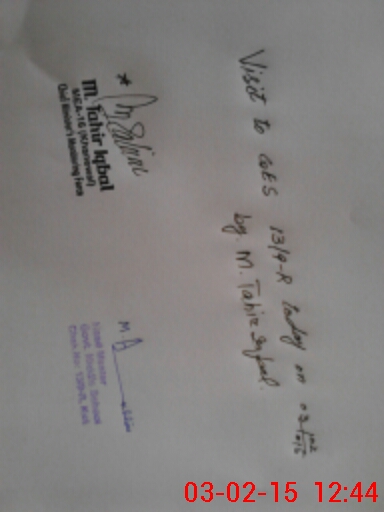 | Monitoring Date: 03-02-2015 | Start Time: 03-02-2015 11:56 AM | End Time: 03-02-2015 12:50 PM | Name of MEA: M.Ta**** Iq**** (S**** | |
