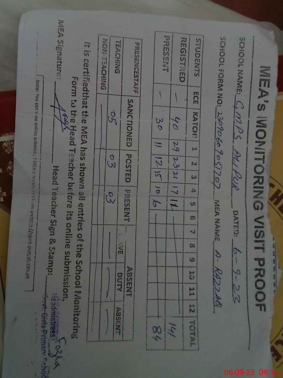 | EMIS Code: 36440505 | Name of School: GMPS ALI PUR | |||