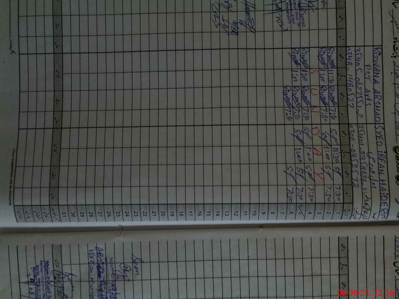 | Name: SY**** IR**** HA**** Designation: (School Headmaster's/Headmistress's) PST Phone/Cell Number: 03**** |