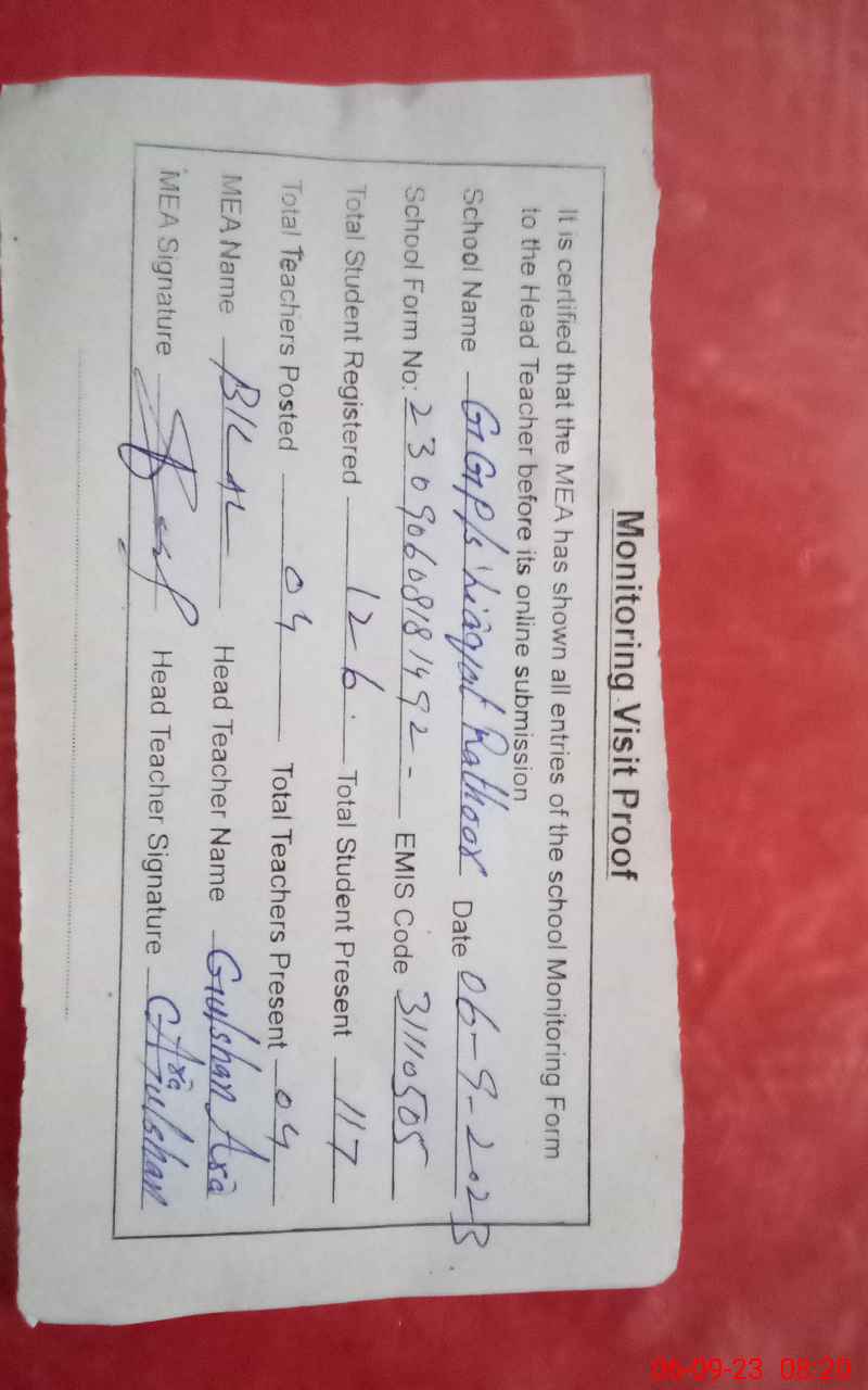 | EMIS Code: 31110505 | Name of School: GGPS LIAQAT RATHOR | |||