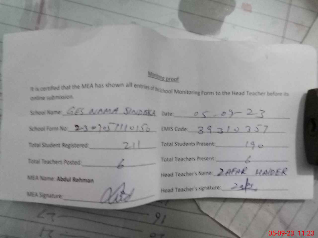 | EMIS Code: 39310357 | Name of School: GES NAMA JINDAY KA | |||