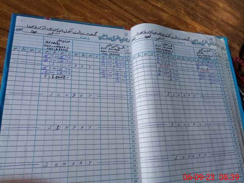 | CNIC | Full Name | Designation | R/C | Absence During Last Calender Month |