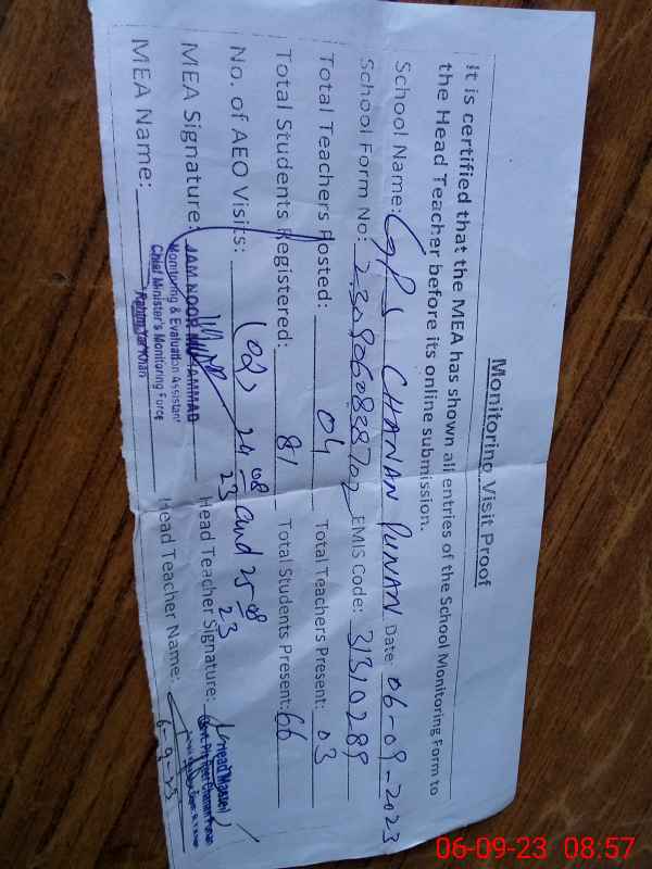 | EMIS Code: 31310289 | Name of School: GPS CHANAN PUNANN | |||