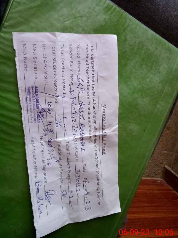 | Attendance Register | Head Teacher | MEA with School | Visit Proof |