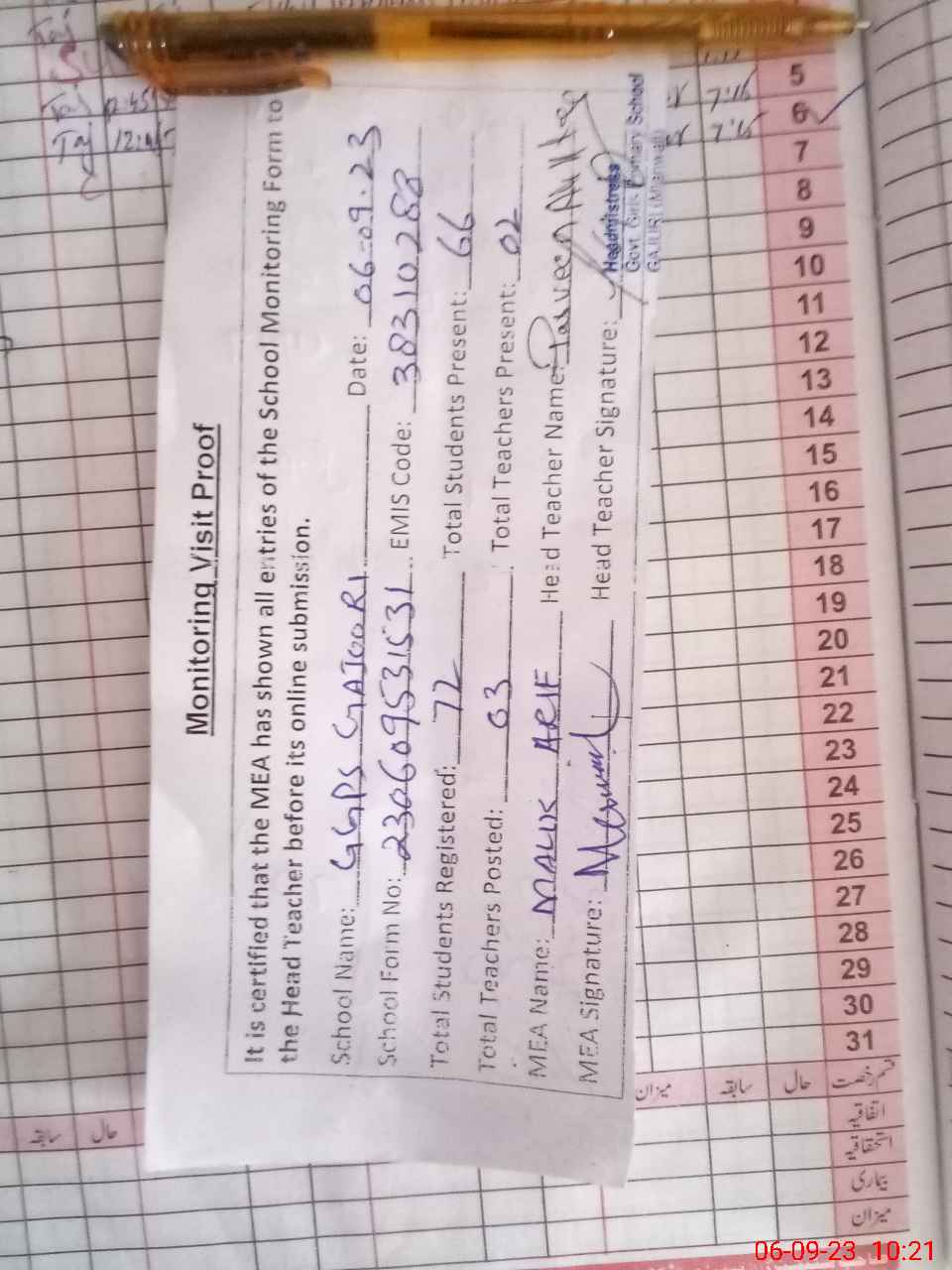 | EMIS Code: 38310288 | Name of School: GGPS GAJOORI | |||
