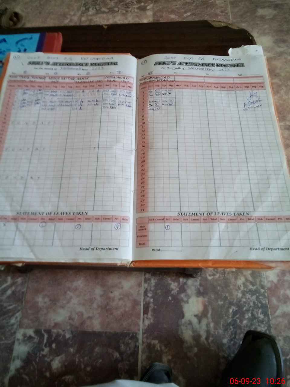 | Total no. of Classrooms: 9 No. of Classrooms Used for Teaching: 9 No. of Classrooms Storing Old Furniture, FTBs, etc: 0Comments if Any: Teacher M Iqbal est transferred and teacher M Yasir Khan est transferred but still shown on Mea tab |