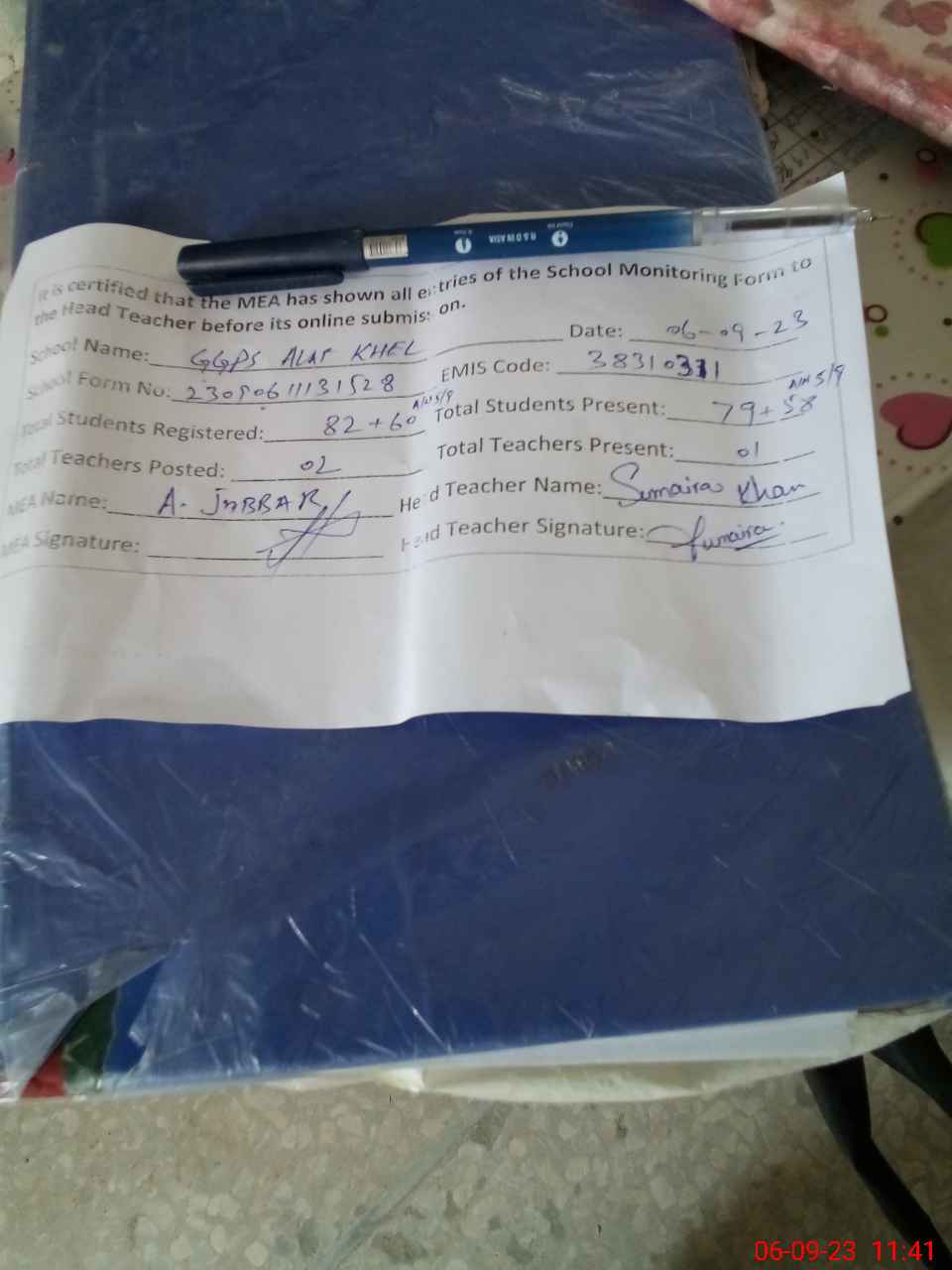 | EMIS Code: 38310311 | Name of School: GGPS ALAF KHEL | |||