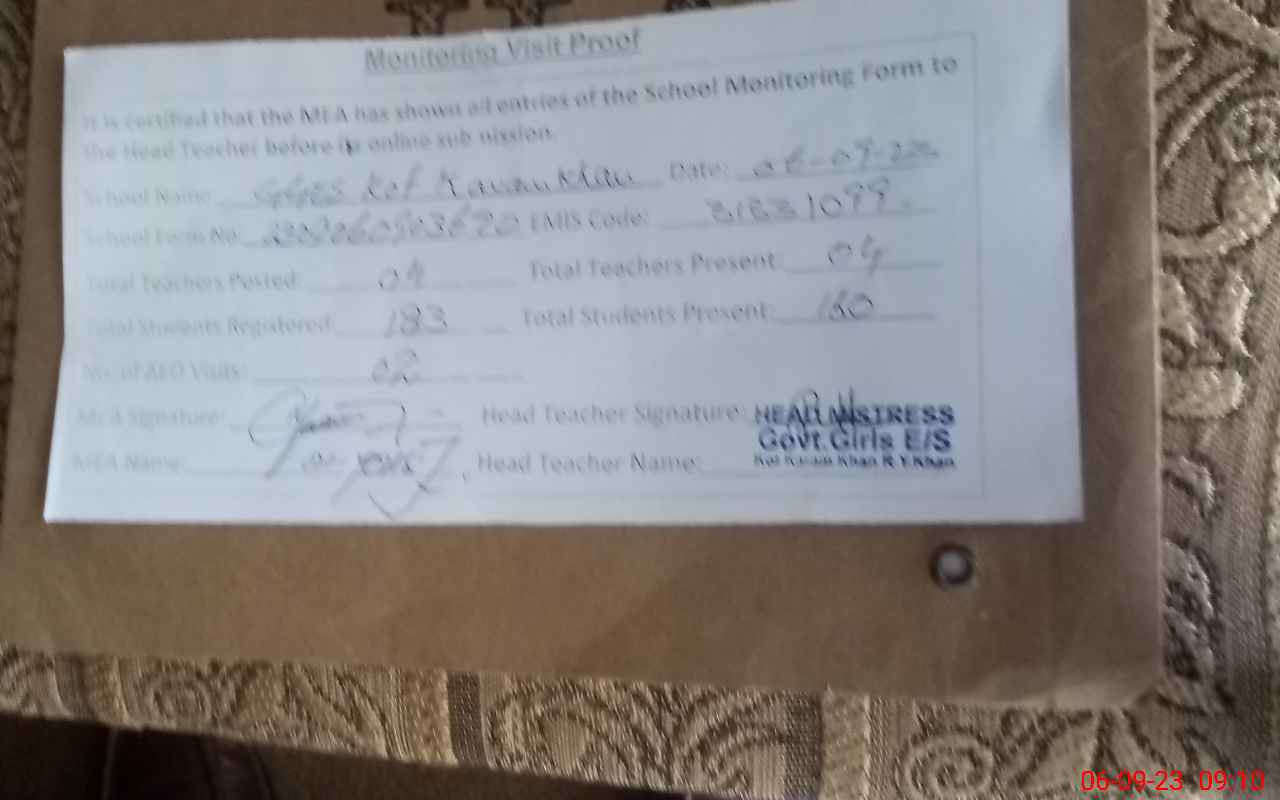 | EMIS Code: 31331099 | Name of School: GGES KOT KARAM KHAN | |||