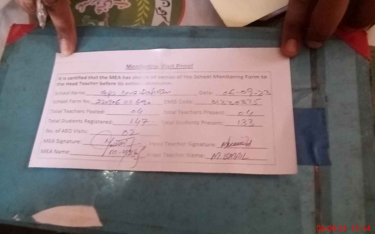| EMIS Code: 31330375 | Name of School: GPS DERA DAHRAN | |||