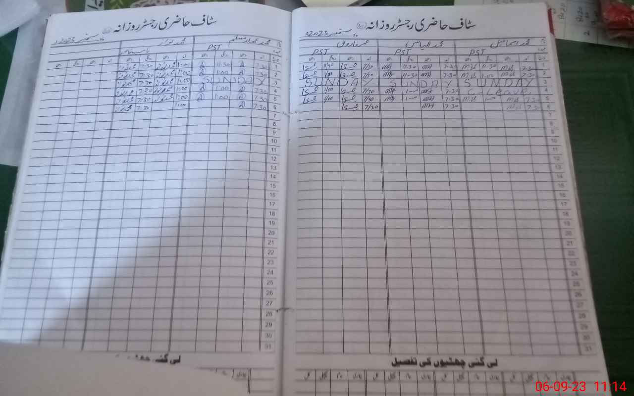 | CNIC | Full Name | Designation | R/C | Absence During Last Calender Month |