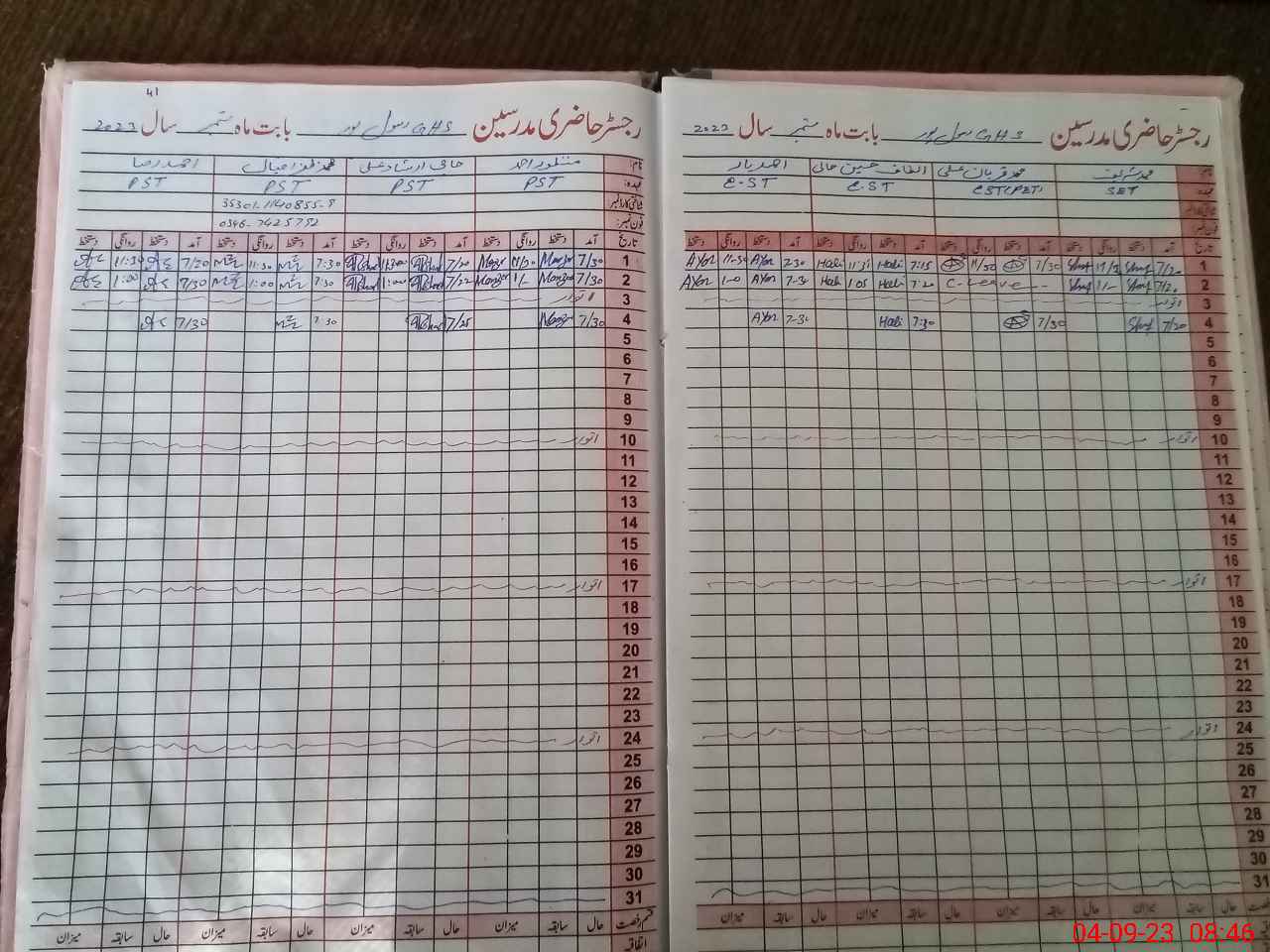 | CNIC | Full Name | Designation | R/C | Absence During Last Calender Month |