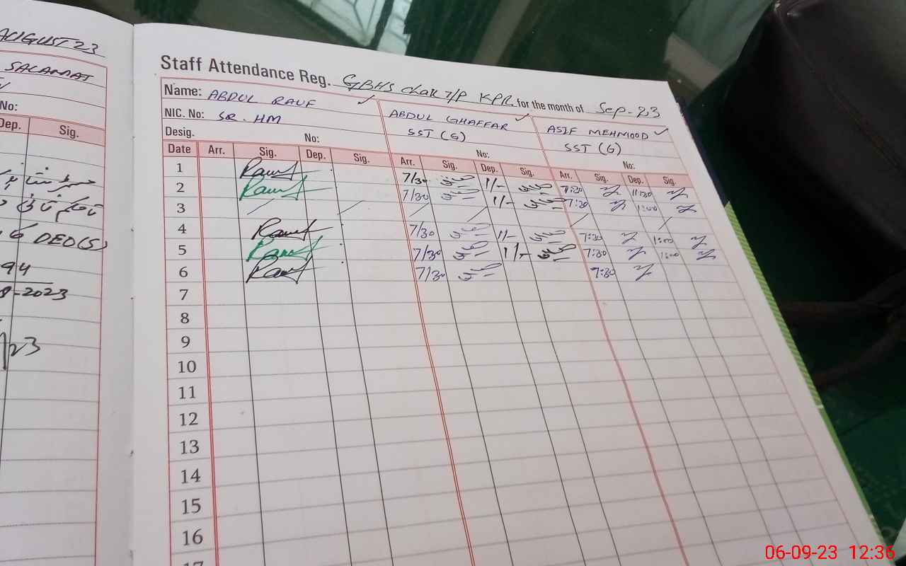 | Name: AB**** RA**** Designation: (School Headmaster's/Headmistress's) SNR HEADMASTER Phone/Cell Number: 03**** |