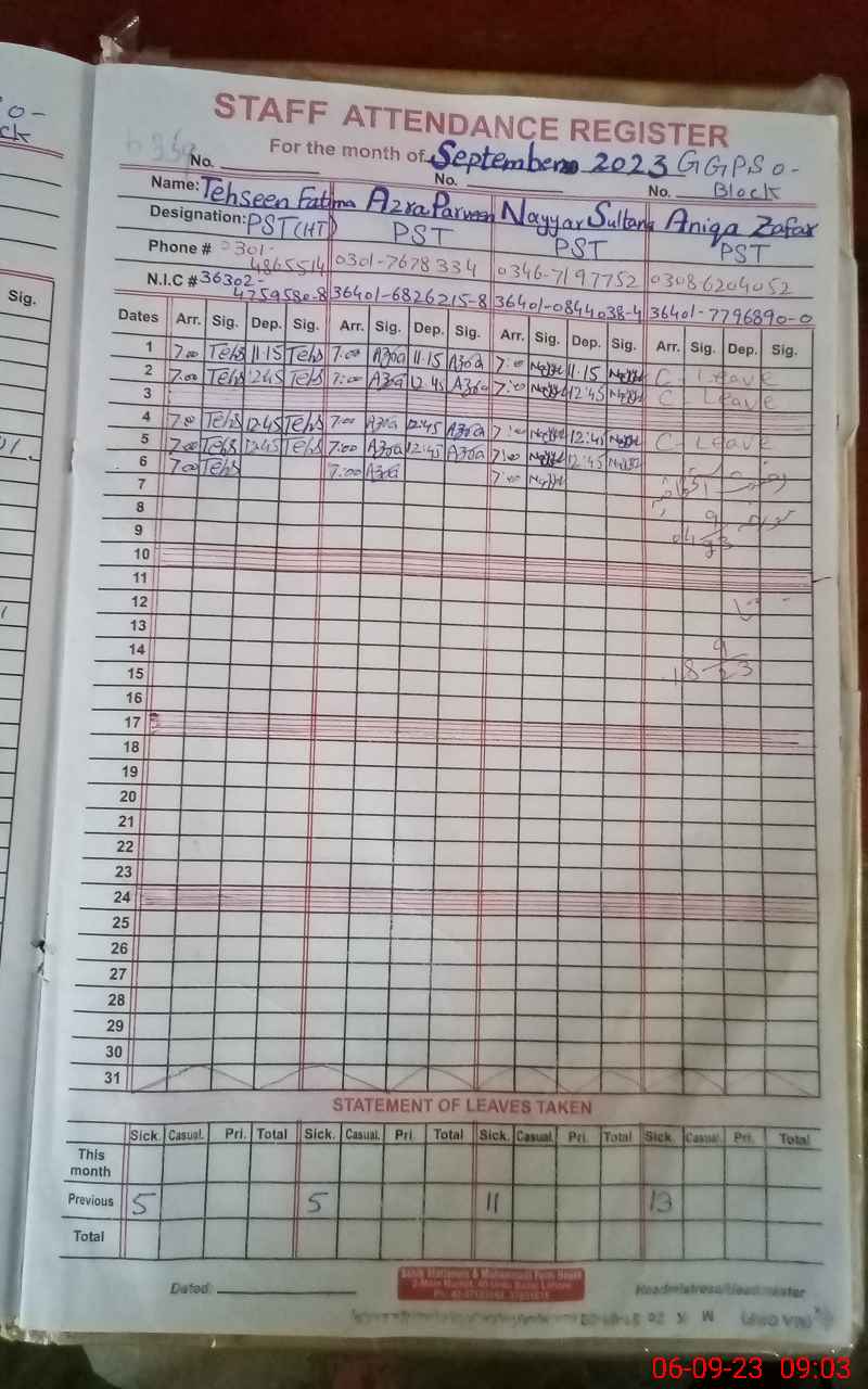 | Name: AZ**** PA**** Designation: (School Headmaster's/Headmistress's) PST Phone/Cell Number: 03**** |