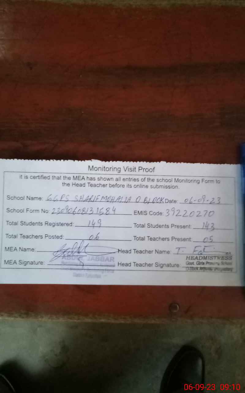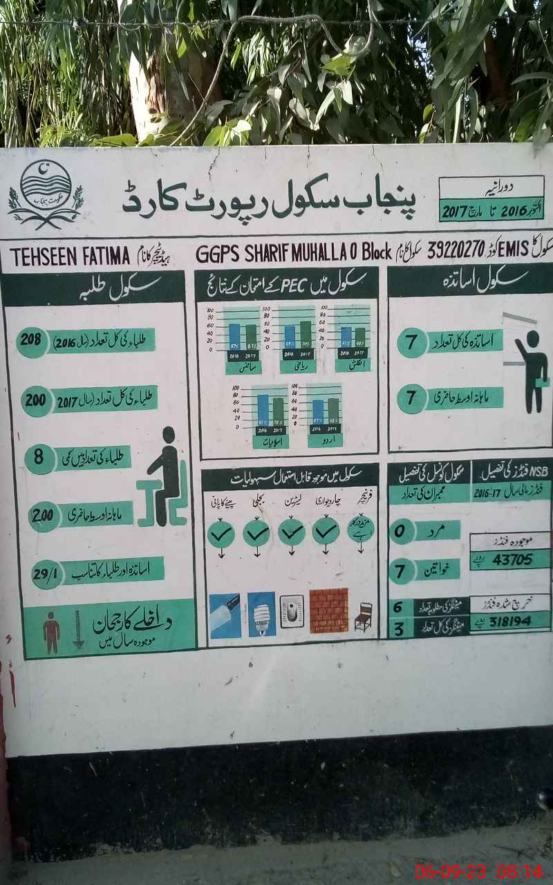 | EMIS Code: 39220270 | Name of School: GGPS SHARIF MOHALLA O-BLOCK | |||