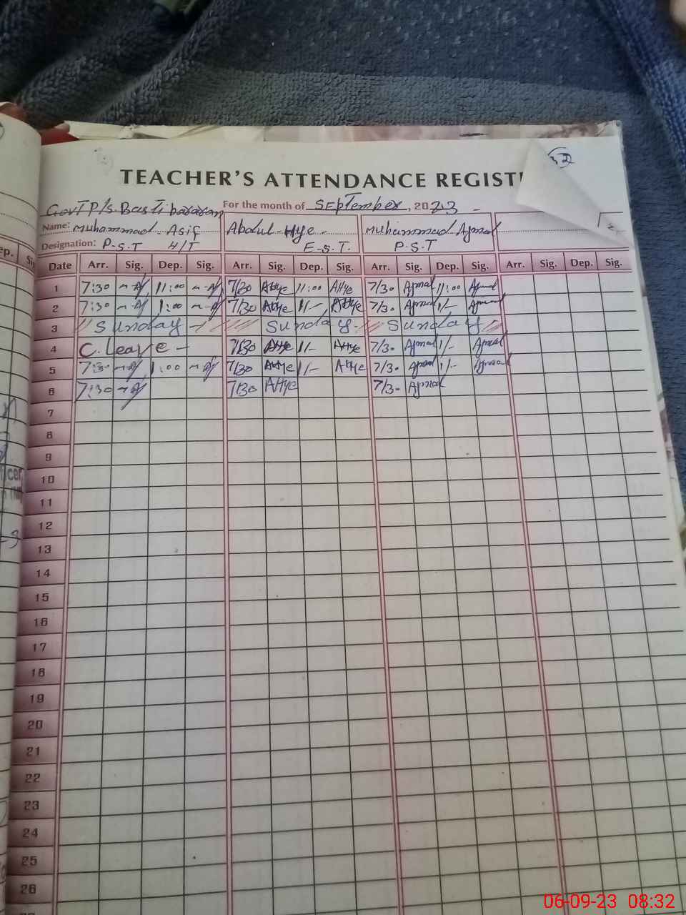 | Name: Mu**** As**** Designation: (School Headmaster's/Headmistress's) P S T Phone/Cell Number: 03**** |