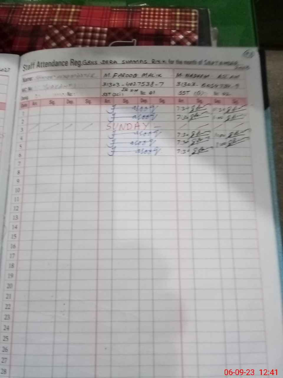 | 31**** | Sh**** Ra**** | KHAQROOB | Contract | 0 | 0 | 0 | 0 | 0 | 0 | 0 | 0 | 0 | Absent (Un-Authorized) |