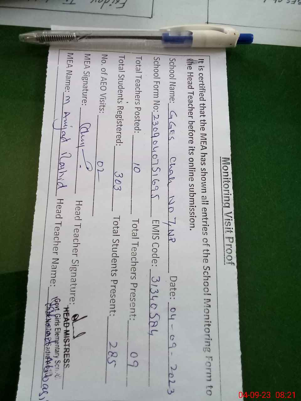 | EMIS Code: 31340584 | Name of School: GGES CHAK NO.7/NP | |||