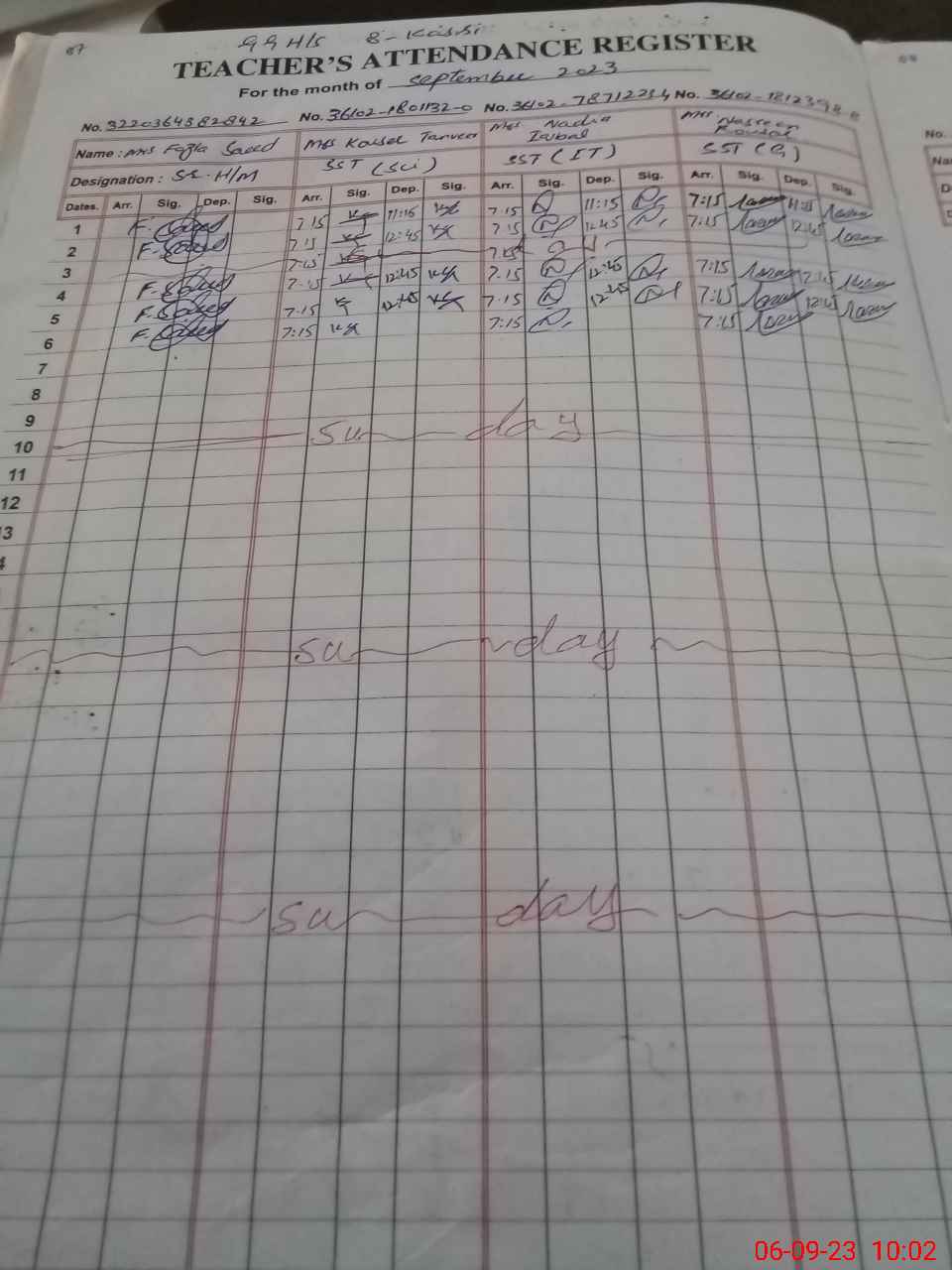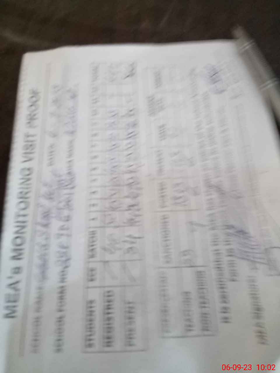 | Monitoring Date: 06-09-2023 | Start Time: 06-09-2023 09:25 AM | End Time: 06-09-2023 10:06 AM | Name of MEA: Mu**** Mu**** | |