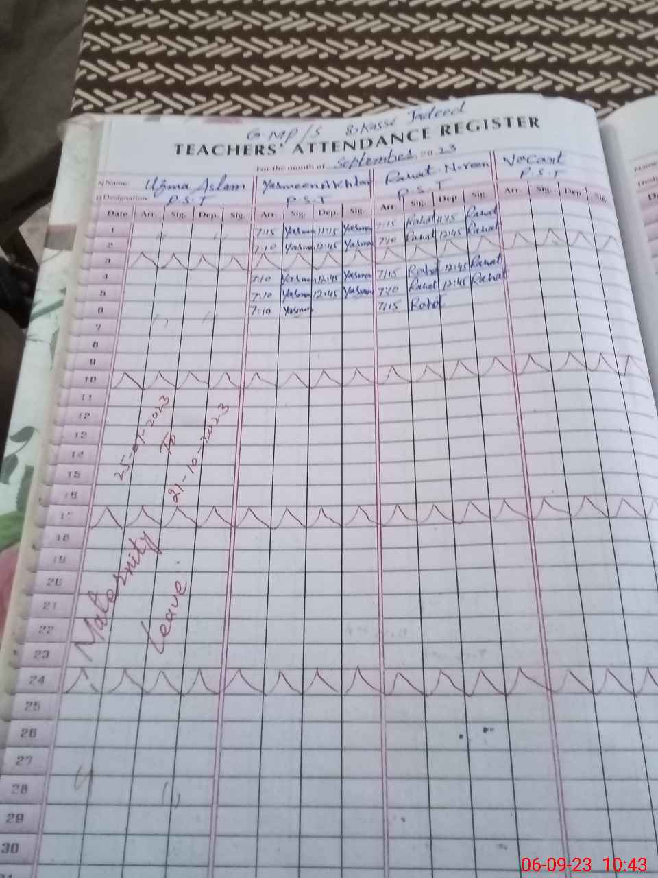 | 36**** | Uz**** As**** | PST | Regular | 0 | 0 | 0 | 0 | 0 | 0 | 0 | 0 | 0 | Maternity |