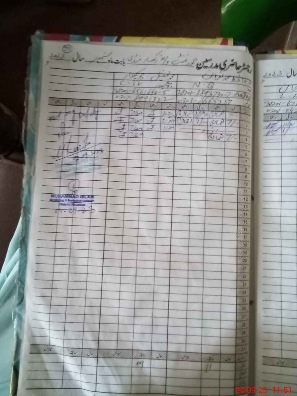 | CNIC | Full Name | Designation | R/C | Absence During Last Calender Month |