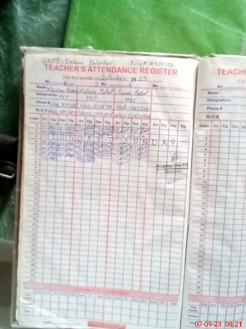| Name: SA**** BA**** Designation: (School Headmaster's/Headmistress's) PST Phone/Cell Number: 03**** |
