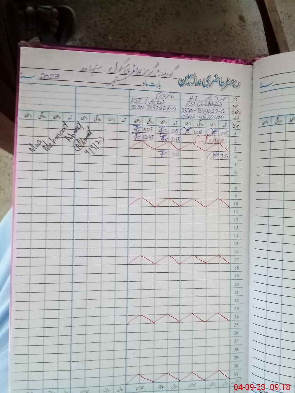 | Name: SA**** SA**** Designation: (School Headmaster's/Headmistress's) PST Phone/Cell Number: 03**** |