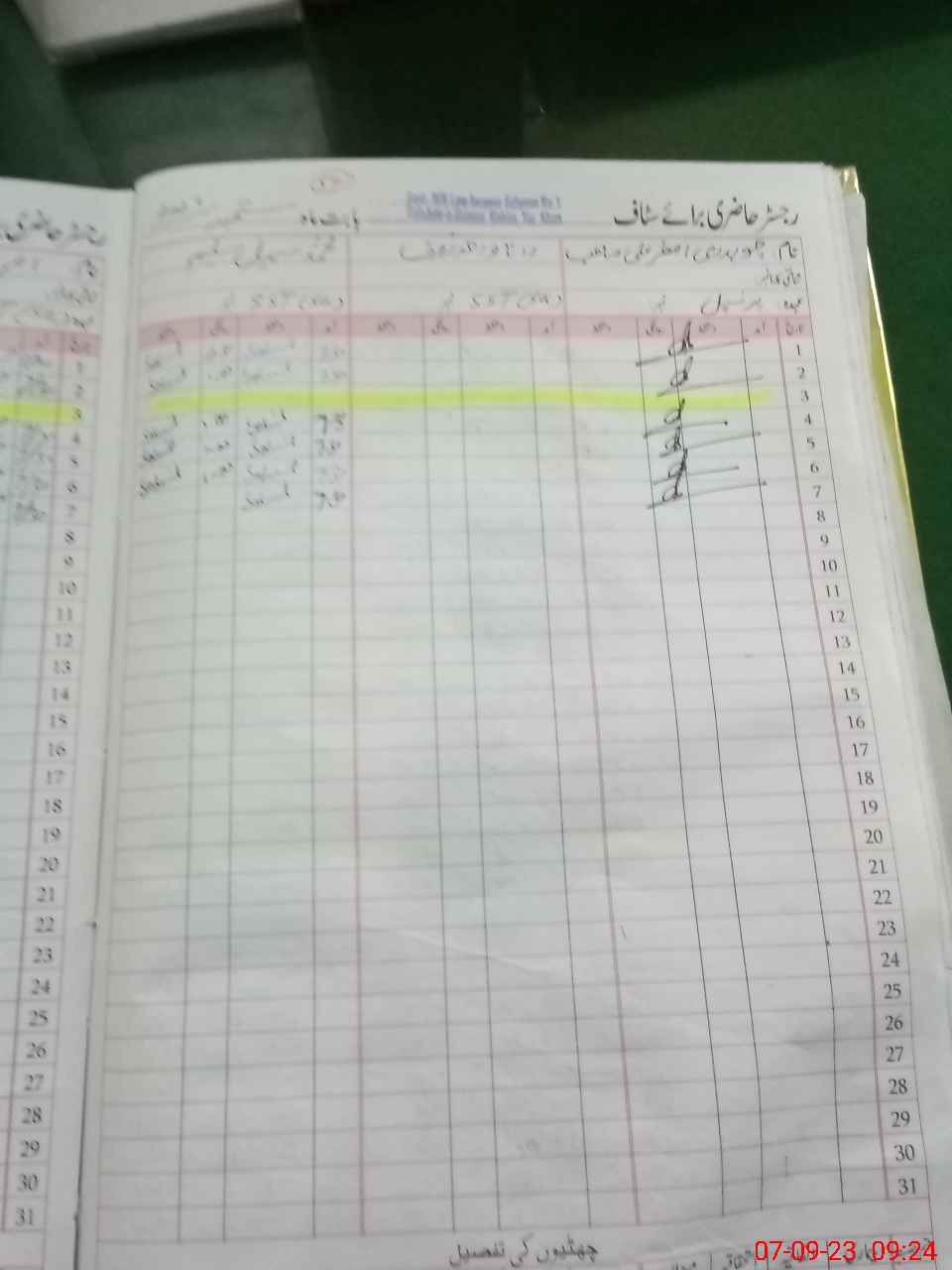 | CNIC | Full Name | Designation | R/C | Absence During Last Calender Month |