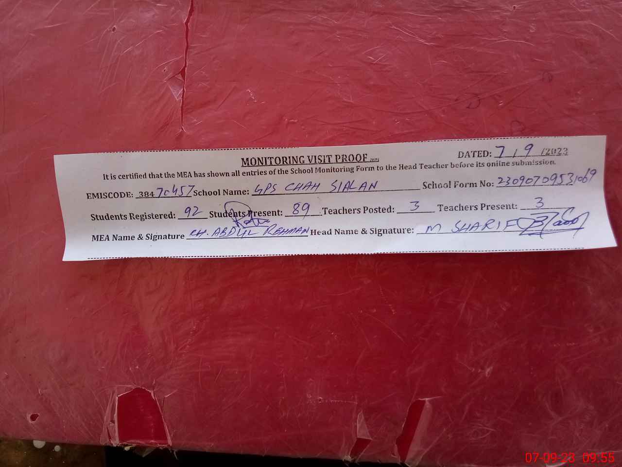 | EMIS Code: 38470457 | Name of School: GPS CHAH SIALAN | |||