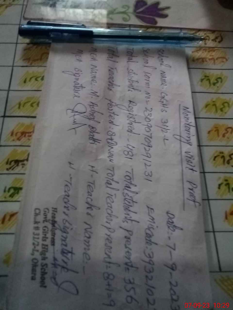 | EMIS Code: 39321023 | Name of School: GGHS CHAK NO.31/2-L | |||