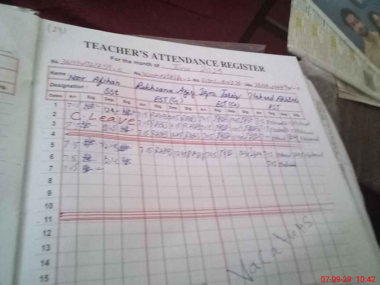 | Name: No**** Af**** Designation: (School Headmaster's/Headmistress's) S.S.T.(GENERAL) Phone/Cell Number: 03**** |