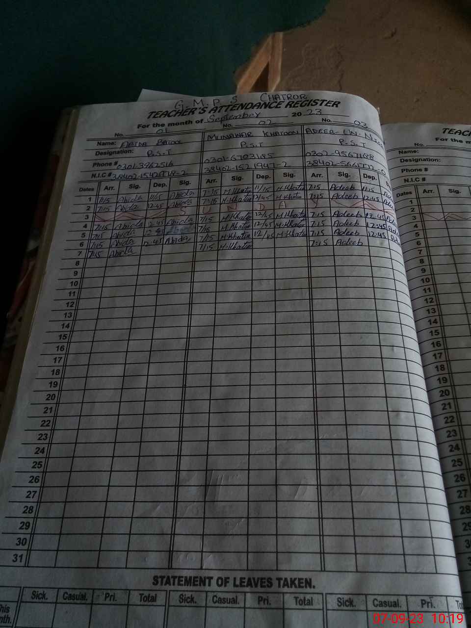 | Name: AA**** BA**** Designation: (School Headmaster's/Headmistress's) PST Phone/Cell Number: 03**** |