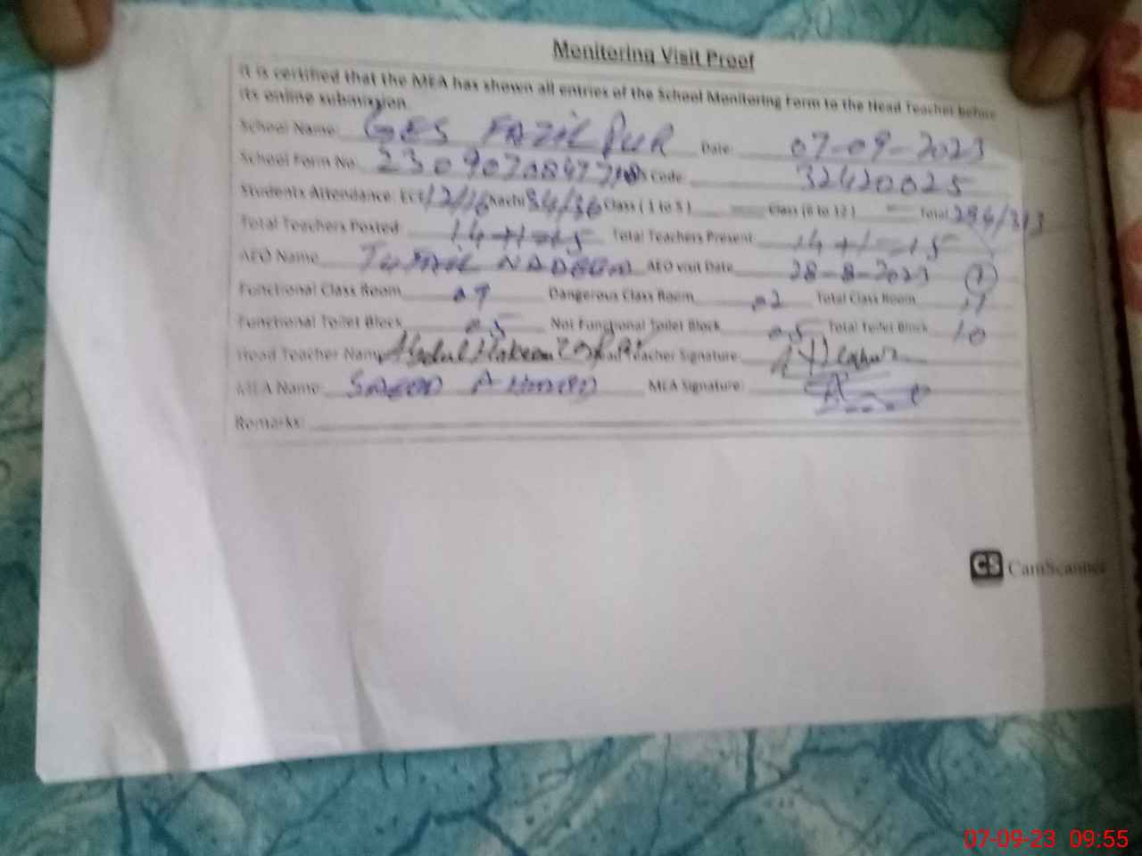 | Name: AB**** HA**** ZA**** Designation: (School Headmaster's/Headmistress's) Head Master Phone/Cell Number: 03**** |