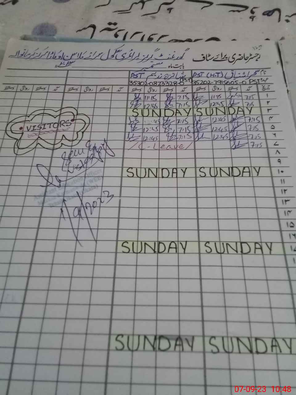 | CNIC | Full Name | Designation | R/C | Absence During Last Calender Month |