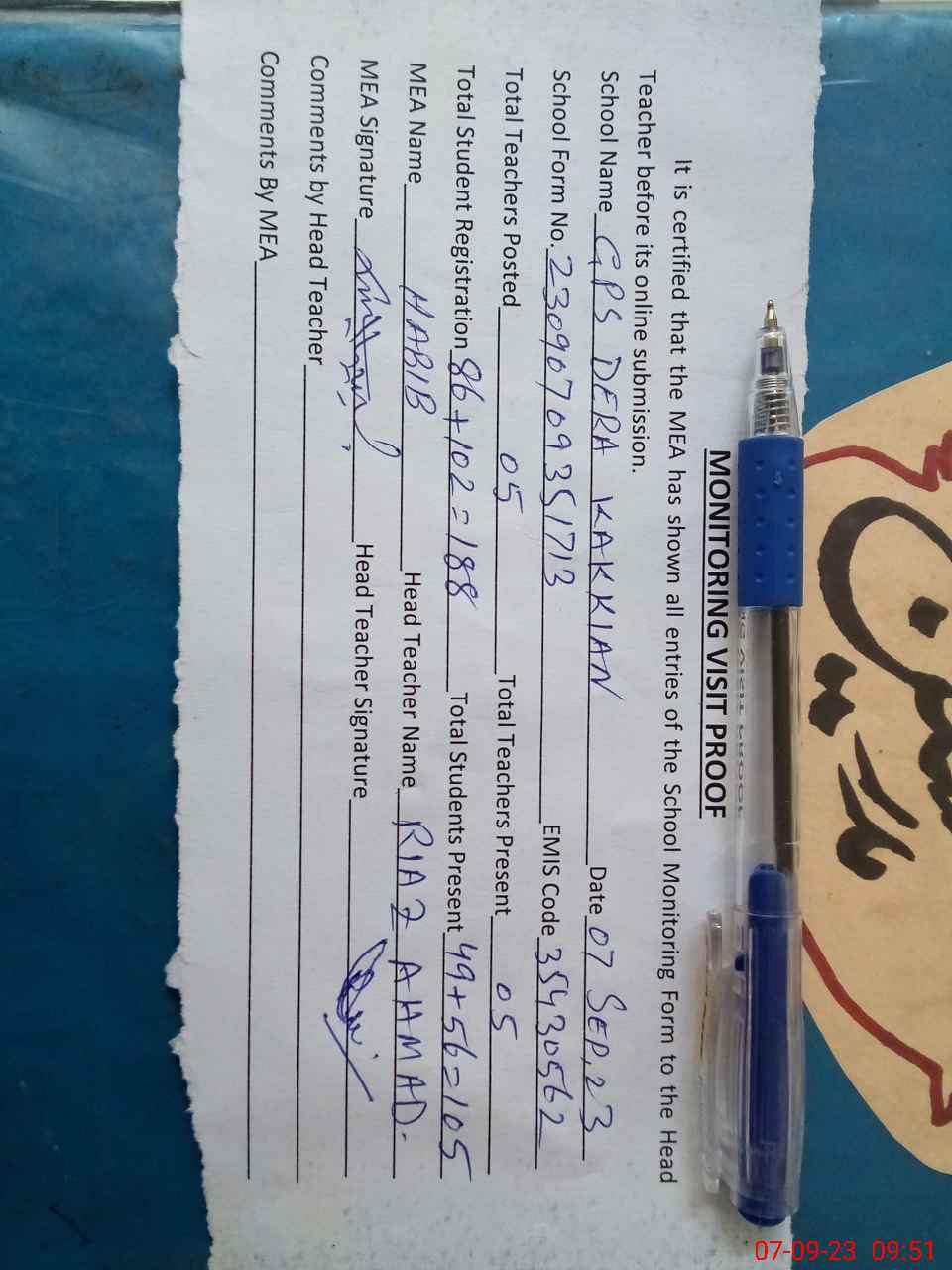 | EMIS Code: 35430562 | Name of School: GPS DERA KAKKIAN | |||