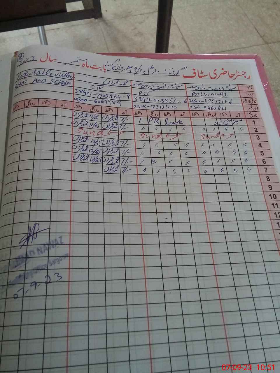 | Name: RA**** ME**** EL**** Designation: (School Headmaster's/Headmistress's) PST Phone/Cell Number: 03**** |