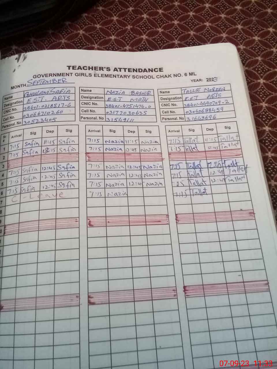 | Name: Gh**** Sa**** Designation: (School Headmaster's/Headmistress's) EST Phone/Cell Number: 03**** |