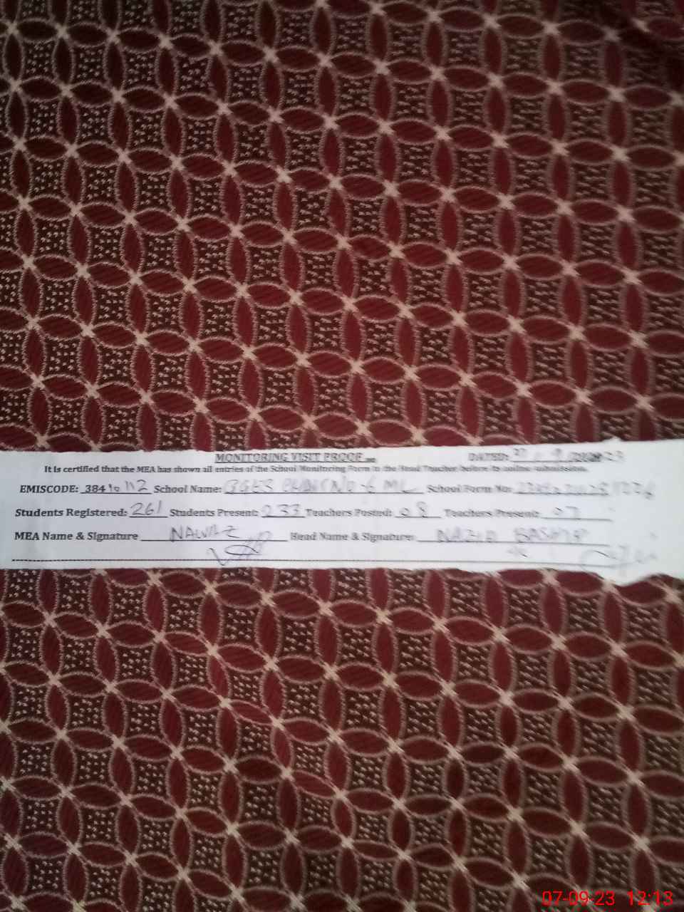 | Certified that this School was Inspected by the Undersigned MEA/DMO Today and the Information Stated Above is as Per Record. | |||||