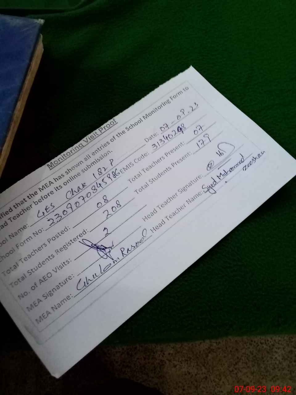 | EMIS Code: 31340298 | Name of School: GES CHAK NO. 182/P | |||