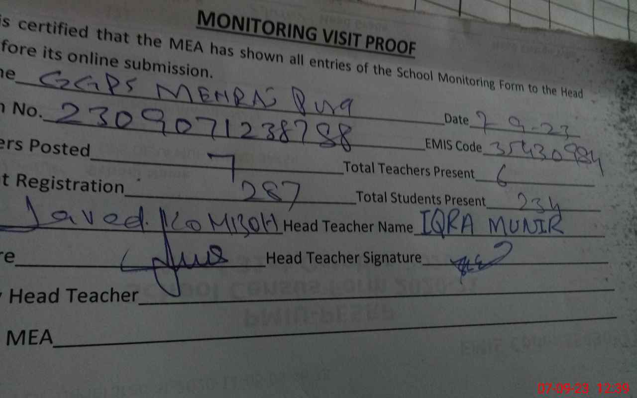 | EMIS Code: 35430984 | Name of School: GGPS MEHRAJ PURA | |||