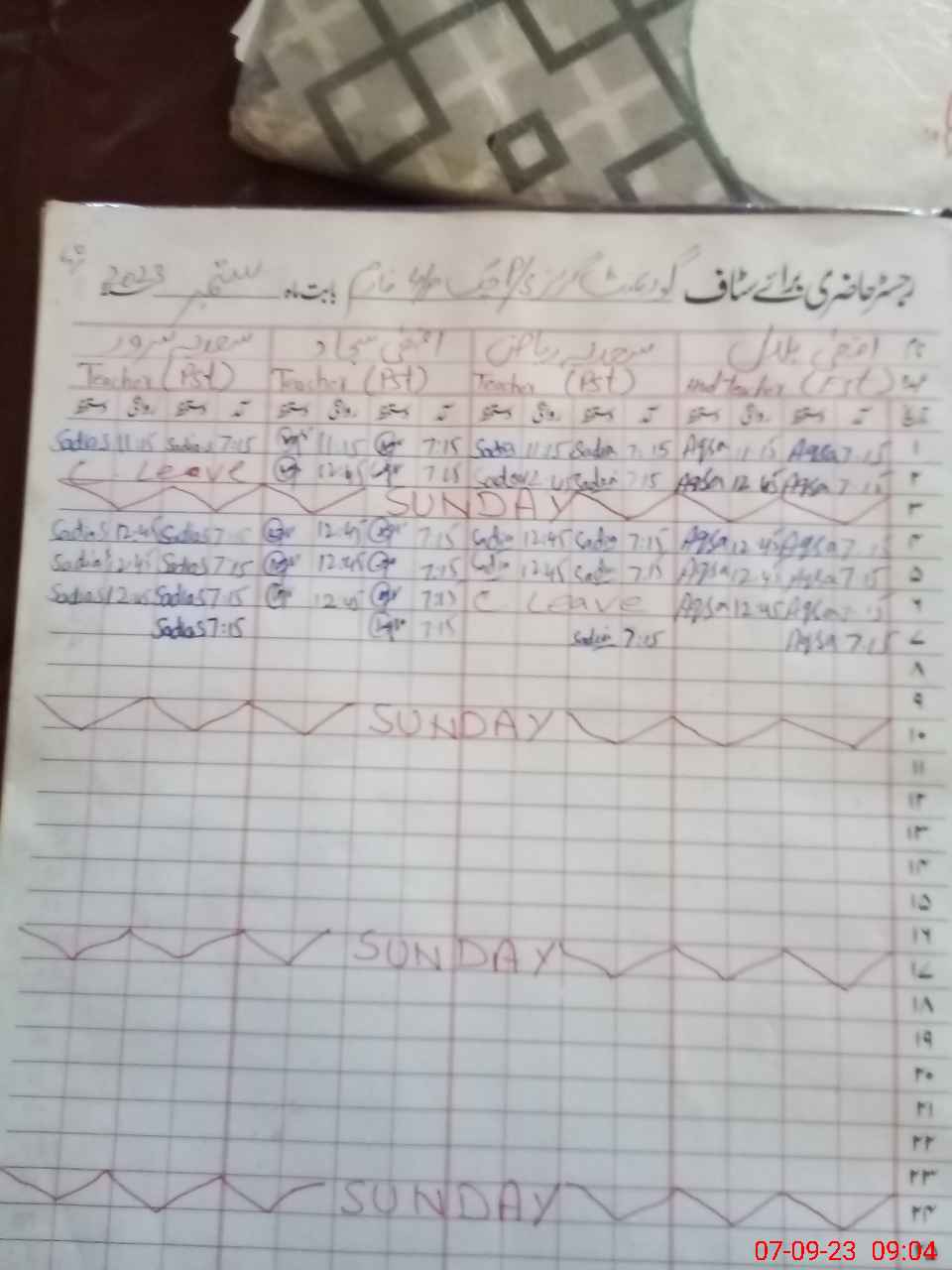 | Leave | Duty | Absent | Maternity | Medical | Ex- Pak |