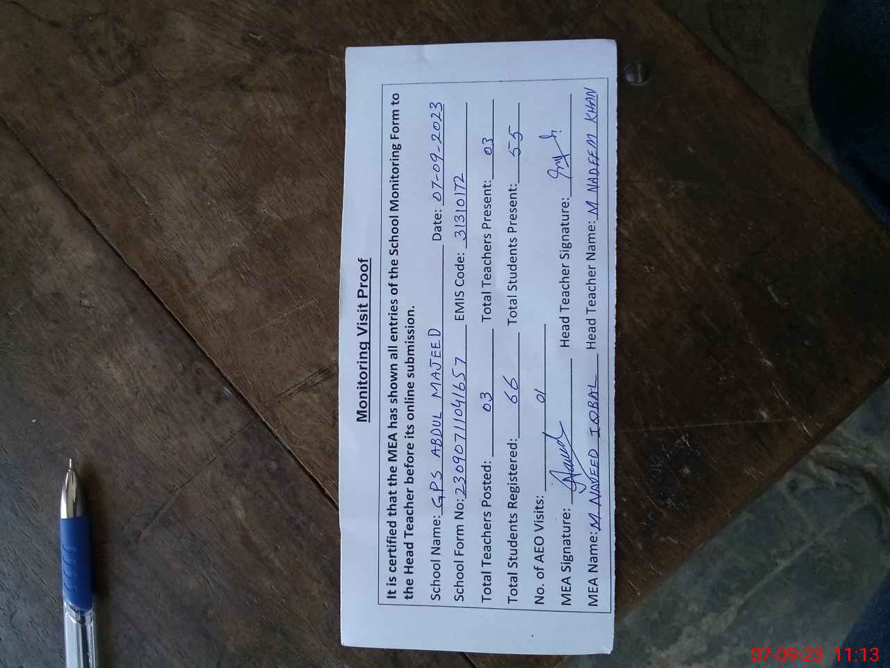 | EMIS Code: 31310172 | Name of School: GPS ABDUL MAJEED | |||