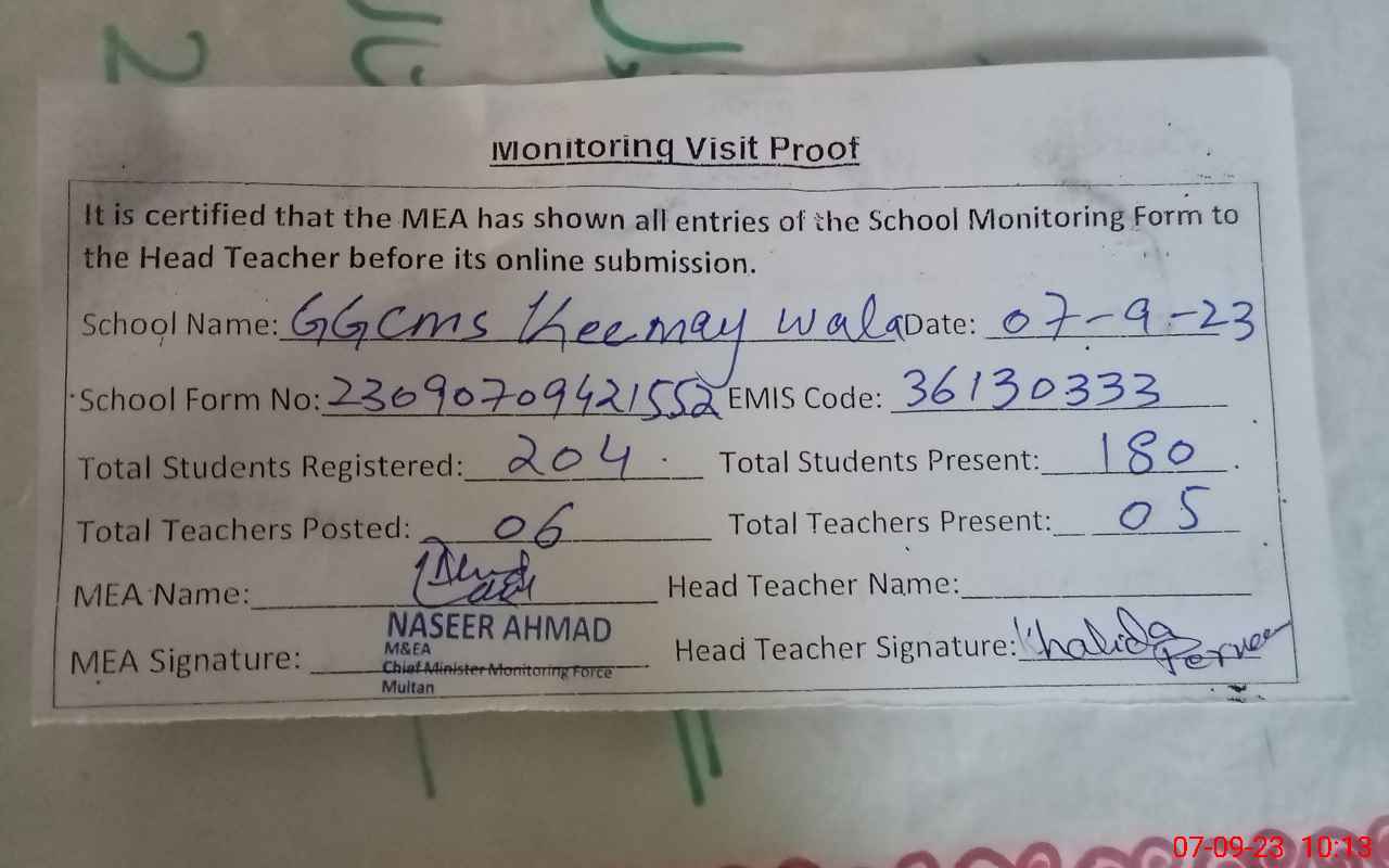 | EMIS Code: 36130333 | Name of School: GGCMS KEEMAY WALA BASTI NAU | |||