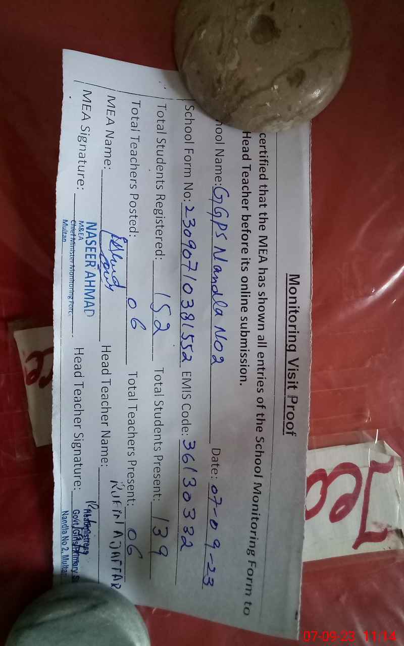 | EMIS Code: 36130332 | Name of School: GGPS NANDLA NO.2 NEAR SYED WALI KHOI | |||