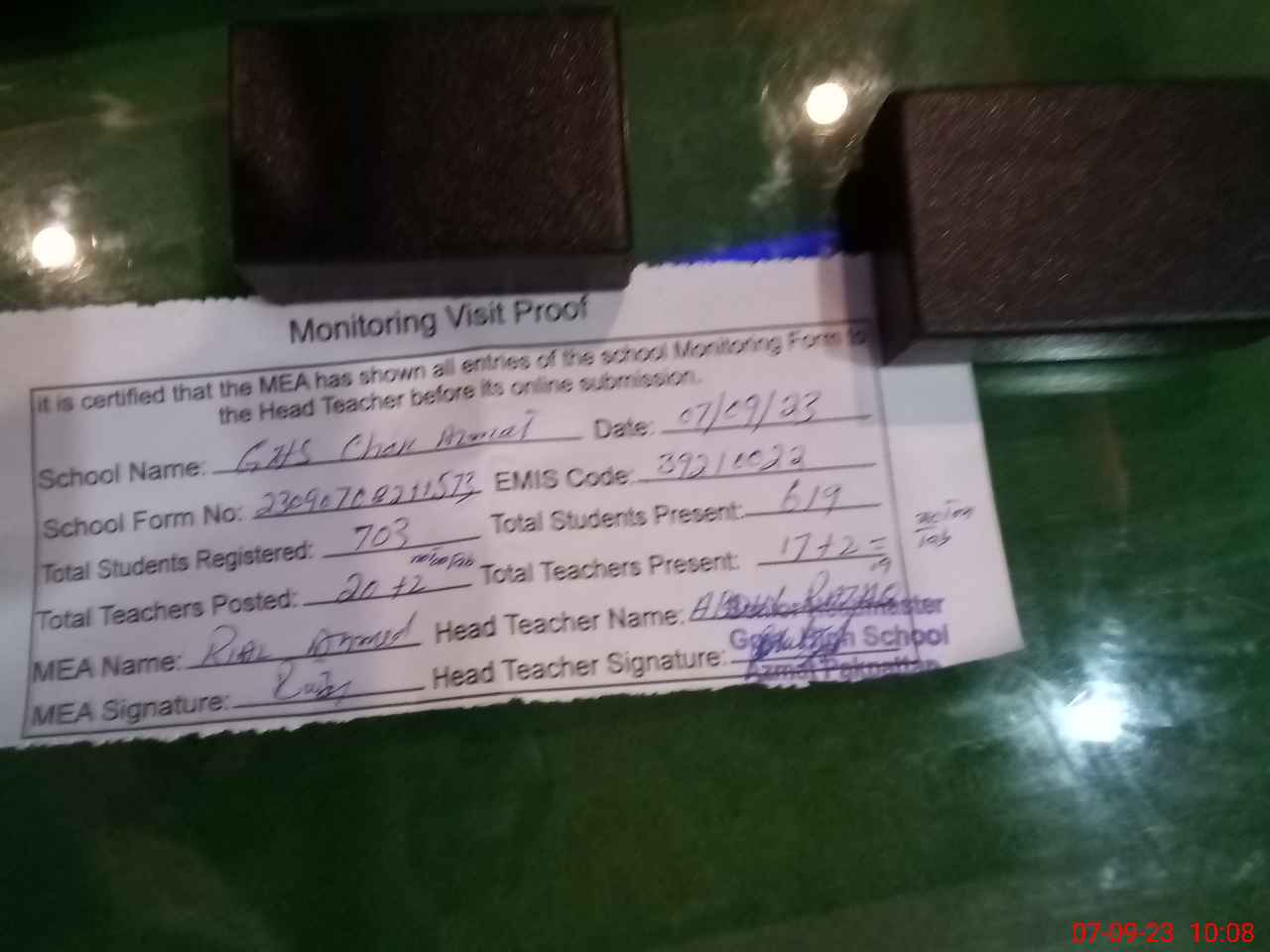 | EMIS Code: 39210022 | Name of School: GHS CHAK AZMAT | |||