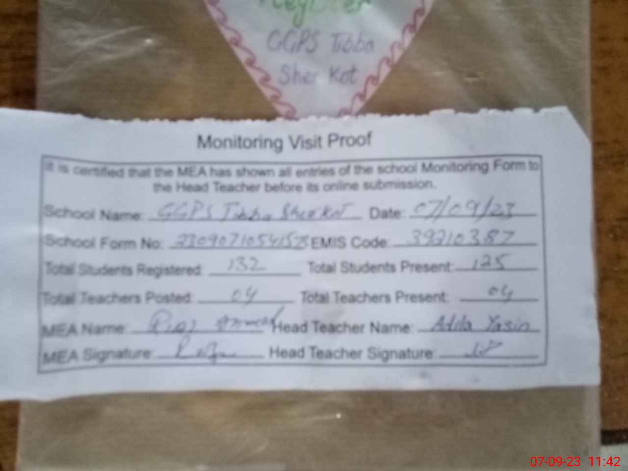 | EMIS Code: 39210387 | Name of School: GGPS TIBBA SHER KOT | |||